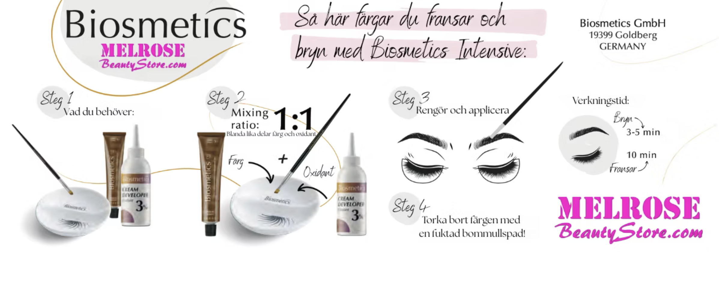 Få allt du behöver för professionell frans- och brynfärgning i ett komplett kit! Biosmetics Intensive Eyelash and Eyebrow Tint är en högkvalitativ frans- och brynfärg som ger ett intensivt, jämnt och naturligt resultat som håller upp till 6 veckor. Perfekt både för hemmabruk och för salonger som vill erbjuda ett brett utbud av nyanser.