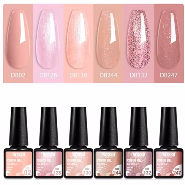 Ge dina naglar en perfekt finish med vårt 6-pack gellacker. Setet innehåller sex vackra nyanser som passar alla tillfällen och ger ett professionellt resultat som håller i upp till tre veckor. Varje flaska innehåller 6 ml. Gellackerna härdas snabbt – bara 1 minut i LED-lampa eller 2 minuter i UV-lampa.